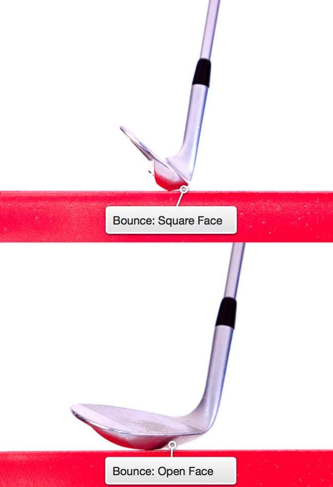 The bounce of the wedge is the angle the sole descends from the leading edge (the part of the club closest to the golf ball at address). Wedges are designed this way to prevent the club from digging into the turf.